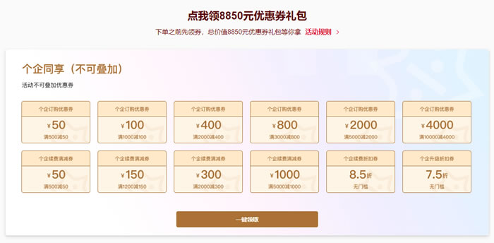 点我领8850元优惠券礼包,下单之前先领券,总价值8850元优惠券礼包等你拿