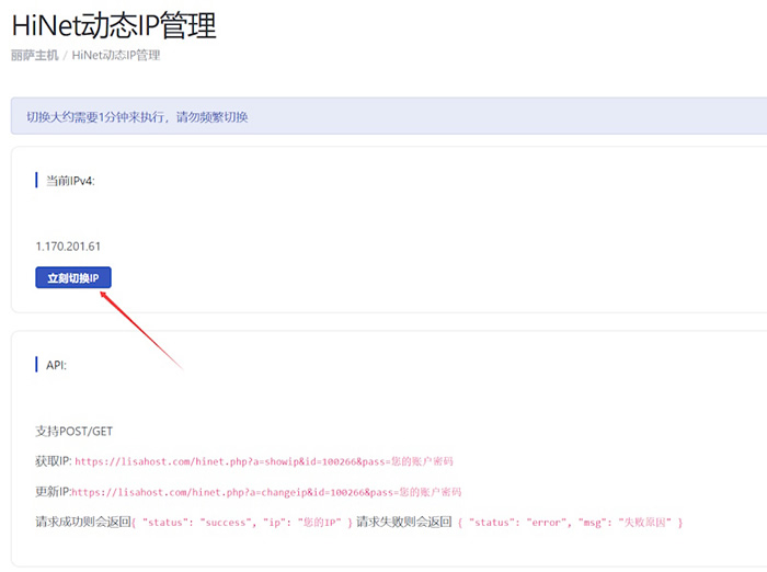 我们可以看到支持在线WEB切换IP或者是API更换,需要多IP的朋友还是不错的。