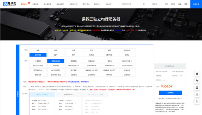 选择 十堰 400元/月 的套餐。它用高100元的月租,换来了3倍的防御力(600G)和更新的V4 CPU平台,是性能和安全的良好平衡点。