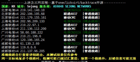 回程:电信:电信CN2GIA 联通:联通4837 移动:移动CMI