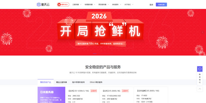 衡天云的开年大促正在如火如荼的进行中,全场最高优惠至1.6折,日本云服务器低至 ¥12/月,采用日本 CN2 GIA 高速回国,亚太访问低至 30ms!原生 IP 限量供,除了日本机房外,还可选香港和美国机房,都非常适合稳定建行或其它用途。此外独立服务器优惠也非常大,日本独服低至 296 元/月,香港独服 364 元/月起,可选优质 CN2 线路,续费同价,性价比直接拉满。近期有需要日本vps、日本服务器的朋友可以关注一下。