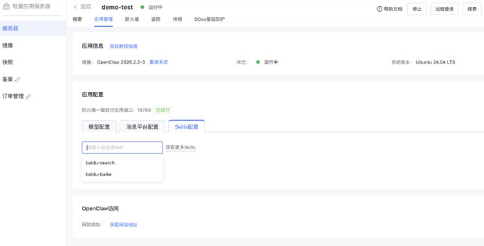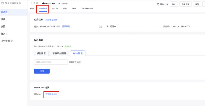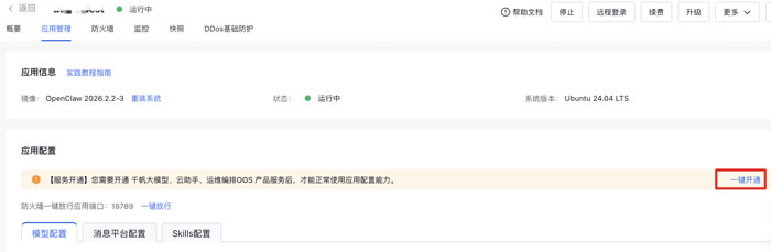 后续如需“模型、消息平台、Skills 一键配置”,务必确保实例为最新版本镜像。