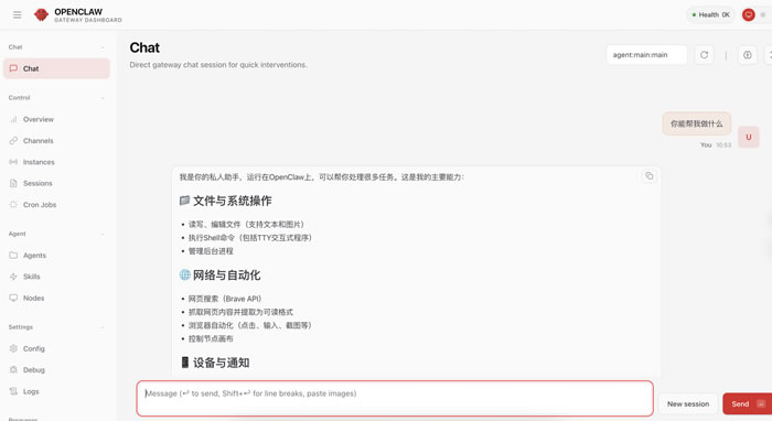 即可体验与openclaw的对话
