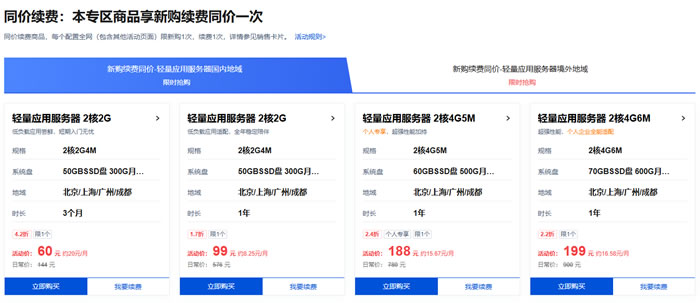 1、轻量应用服务器国内地域