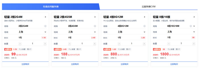 腾讯云轻量应用服务器4核大算力,新用户低至79元/年;腾讯云CVM蜂驰型,首单低至2.7折。