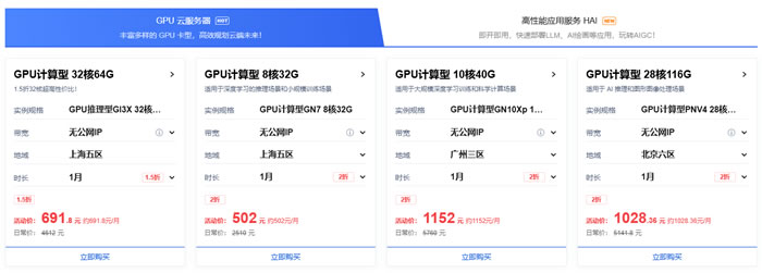 二、腾讯云高性价比GPU算力专区
