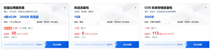 腾讯云限时秒杀专区推出轻量应用服务器、轻量优选流量包、COS标准存储容量包三种产品,4核4G3M、300GB月流量配置轻量应用服务器低至38元/年。