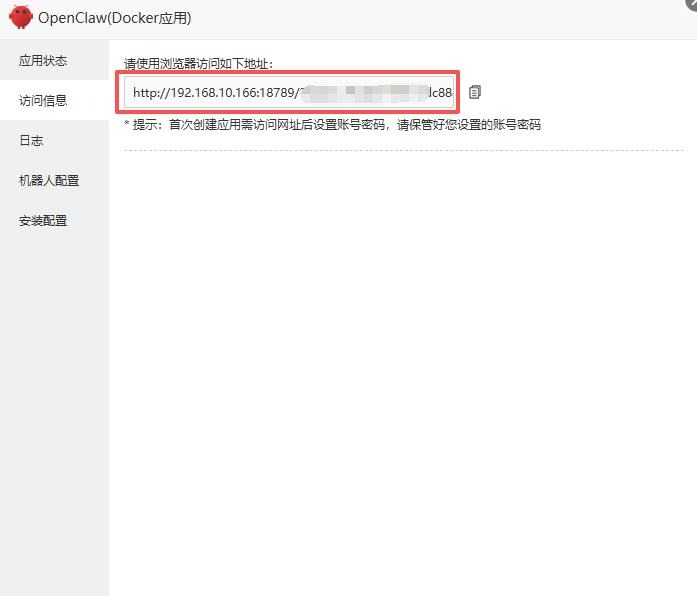 安装完成后,在 OpenClaw 插件页面 → 访问信息,复制带 Token 的访问链接: